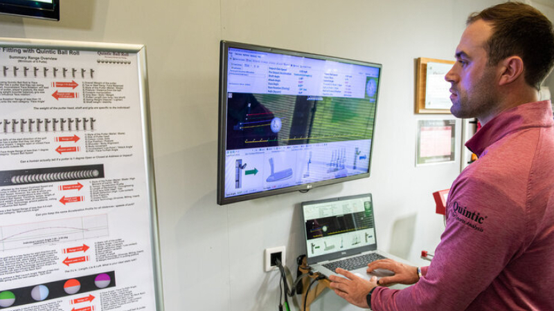 In the lab ball flight is simulated via a high definition projector onto a large 4mx3m screen. The launch monitor provides all the crucial club and ball data invaluable for swing analysis and equipment performance evaluation. We use Foresight Sports GC2 HMT to analyse club and ball data for lessons and club fitting.